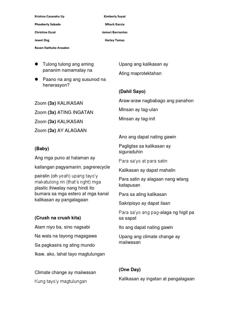 Pagnagalit ang kalikasan para tayong basura na makalat sa daan - by Aireen Parian. Jingle tungkol sa kalikasan.