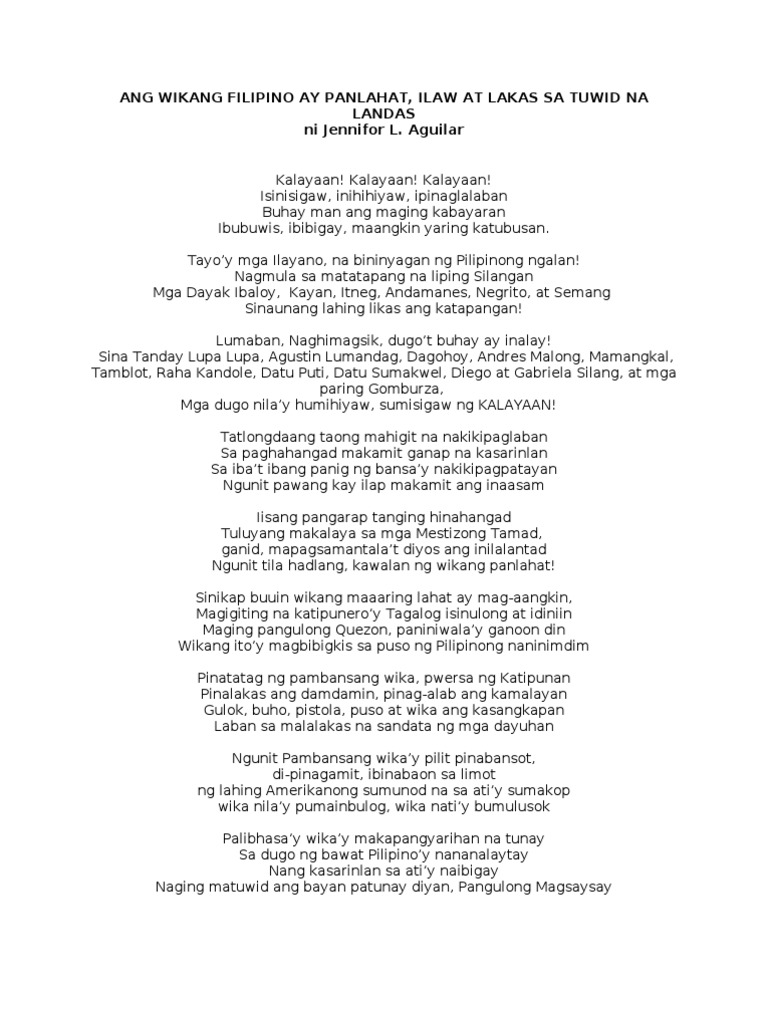 Ang Wikang Filipino Ay Panlahat Pdf